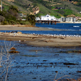 Numerous shorebirds gathered on the sandbar at the mouth of Malibu Creek. That’s