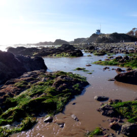 Just like humans, birds also take advantage of low tide to explore the tide pools. It’s not uncommon to encounter great blue herons, snowy egrets foraging in the intertidal zone. Winter also brings migrant and seasonal shorebirds to the coast. This is also the time of year when migrating gray whales pass close to shore.