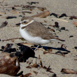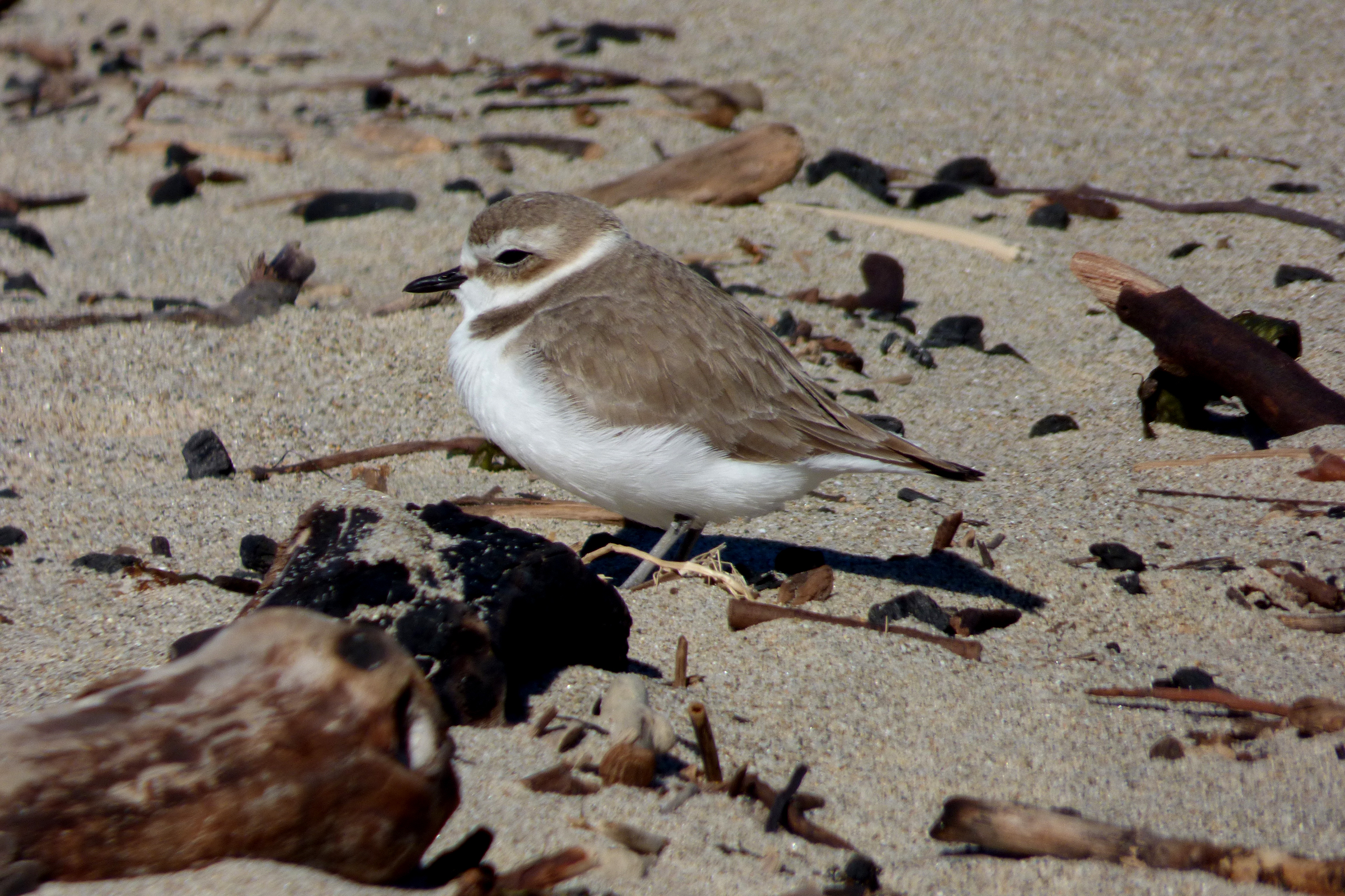 again. The sand where this bird is standing is littered with char from the Woolsey Fire,