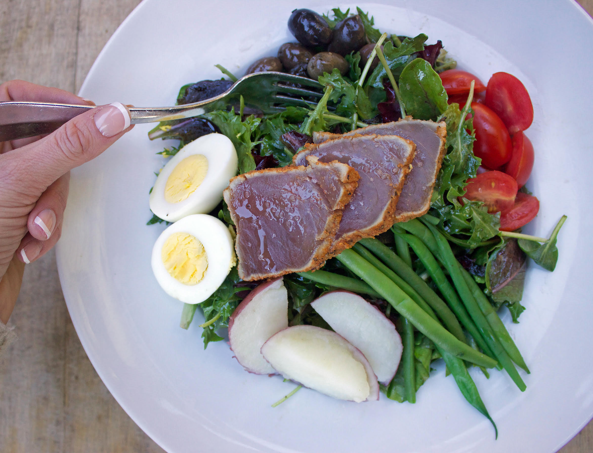 A selection of locally grown produce and some meats is important to Cohn. “We pride ourselves on sourcing our proteins and produce as close to home as possible. Most of our greens are local and organic. While most of our meats come from large steer farms in Omaha, Colorado and Texas, our burgers are from grass-fed beef in Paso Robles.”