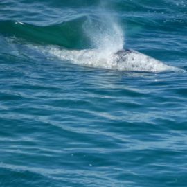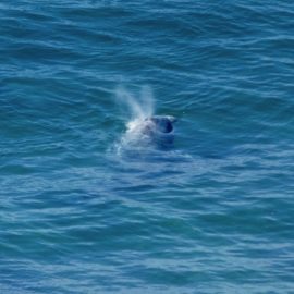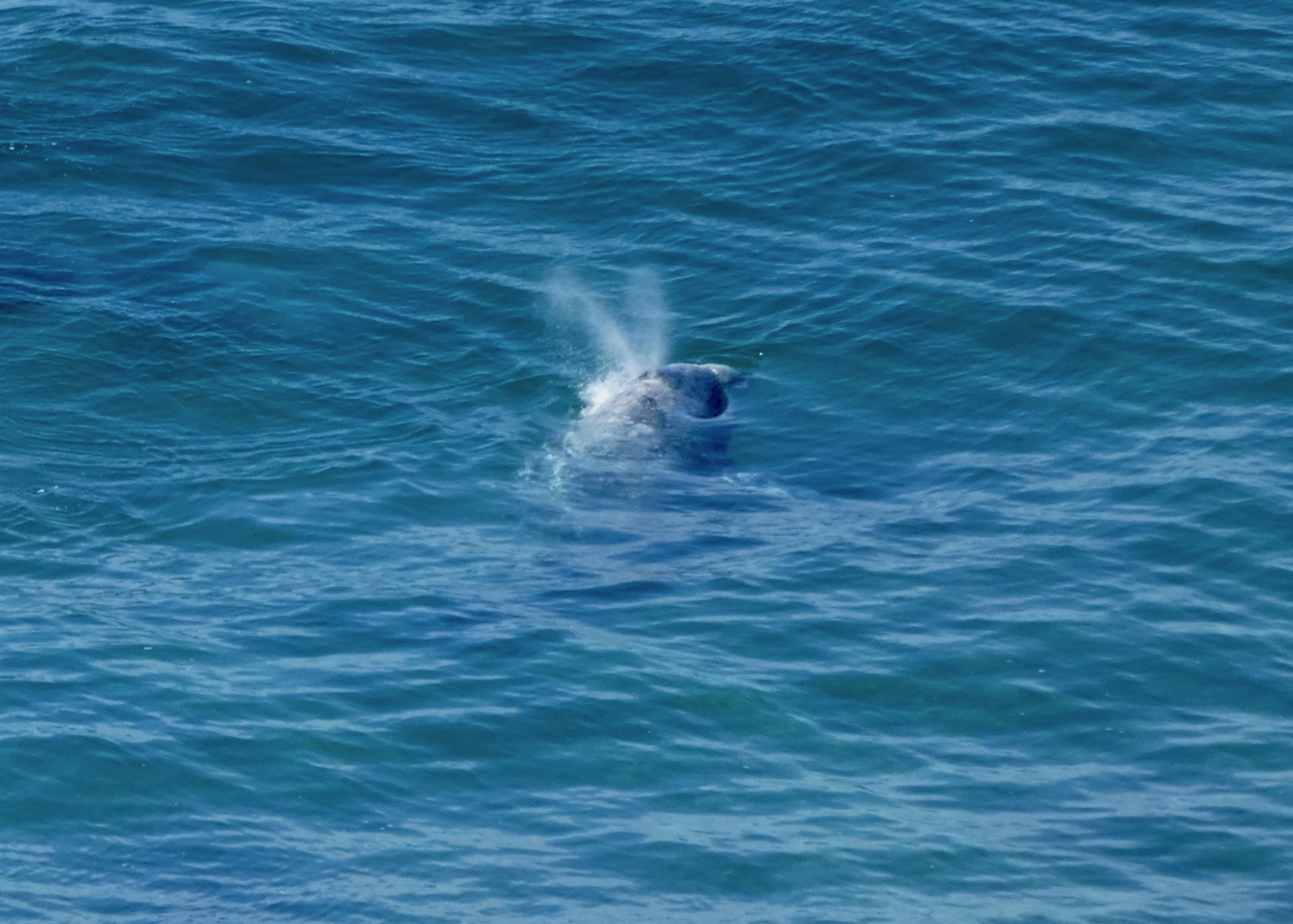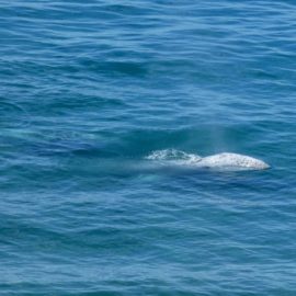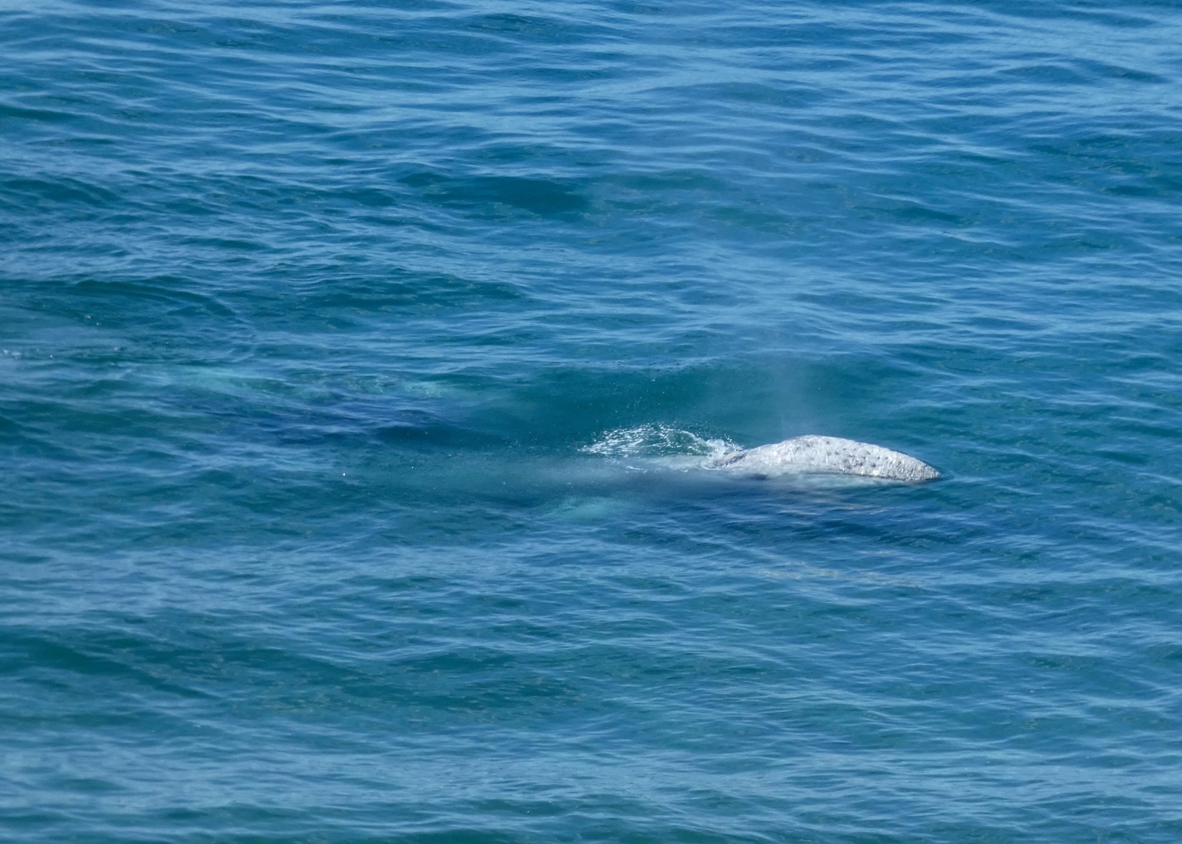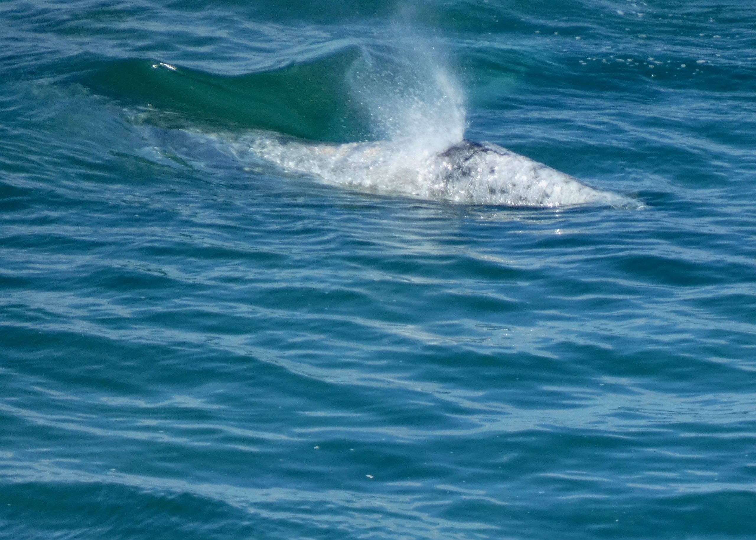 Most gray whale sightings are of a distant spout or puff of breath far out to sea or a Loch Ness Monster-like hump. Often all one sees is the puff of breath with no whale in sight. These giant mammals can hold their breath for a long time and it is easy to lose track of them before they surface to breathe again. Even the briefest glimpse of these benign and beautiful giants is an amazing experience, a memory to be treasured.