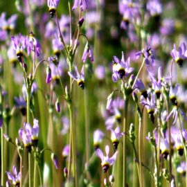 Blue dicks (Dichelostemms capitatum) grow from a corm deep underground, enabling it to survive and thrive during wild. It’s just starting to bloom in profusion in the Woolsey Fire burn area, but I also thrives in Topanga. Look for this delicate, long-stemmed wildflower in Topanga State Park.