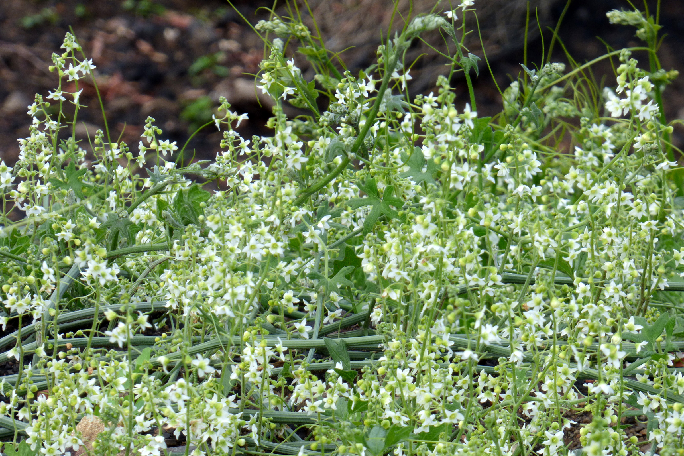 Wild cucumber (Marah macrocarpa) is also known as “manroot, for its enormous root