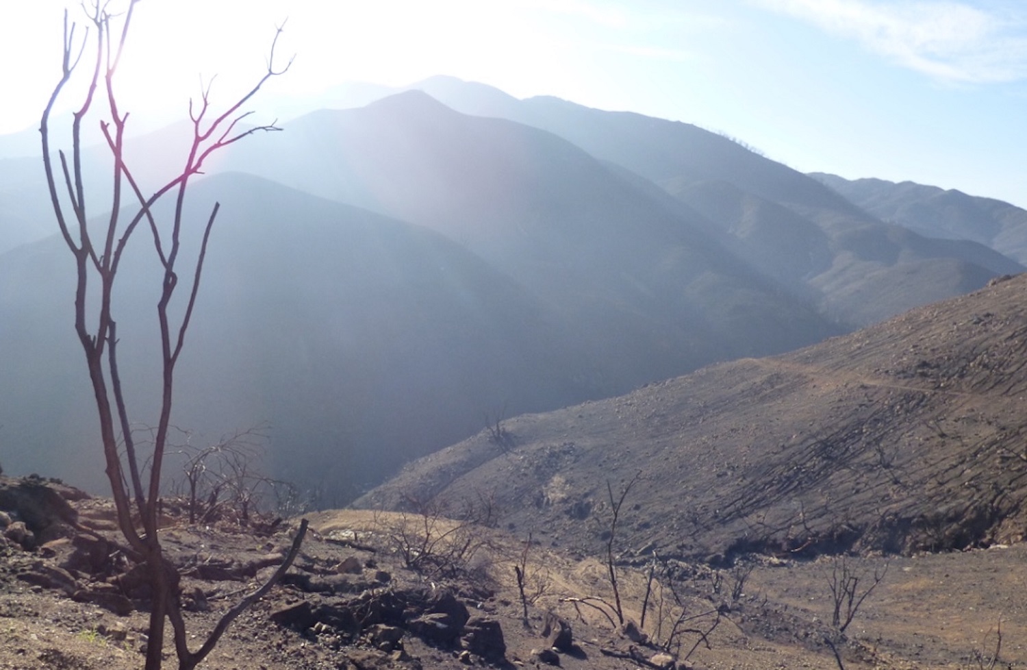 Kanan, where the fire burned had so much energy as it raced into Malibu that it formed a fire whirl or tornado. The first photo is in early November, the second, six months later.