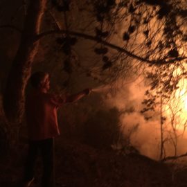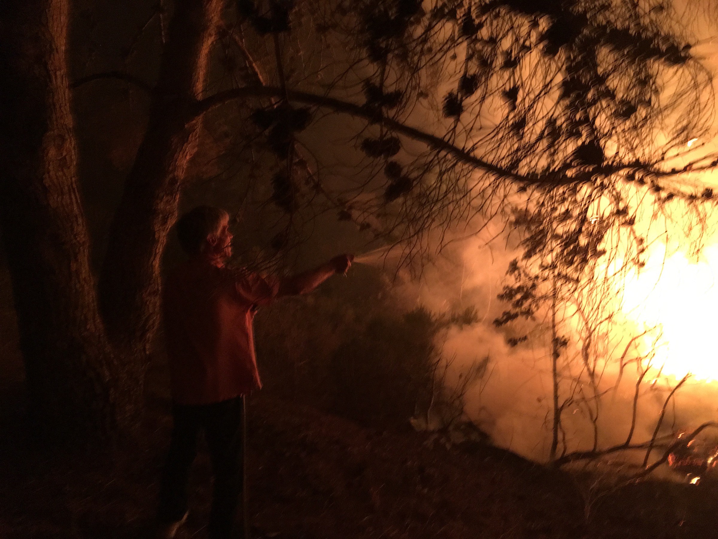 On Dume Drive, Marco Longo worked to keep the fire out of the gully behind his family’s home and the homes of his neighbors. “It was close,” his mother, Aelina Longo, told the Messenger Mountain News. “He saw a house blow up. He couldn’t save that one, but he stopped the spread.”