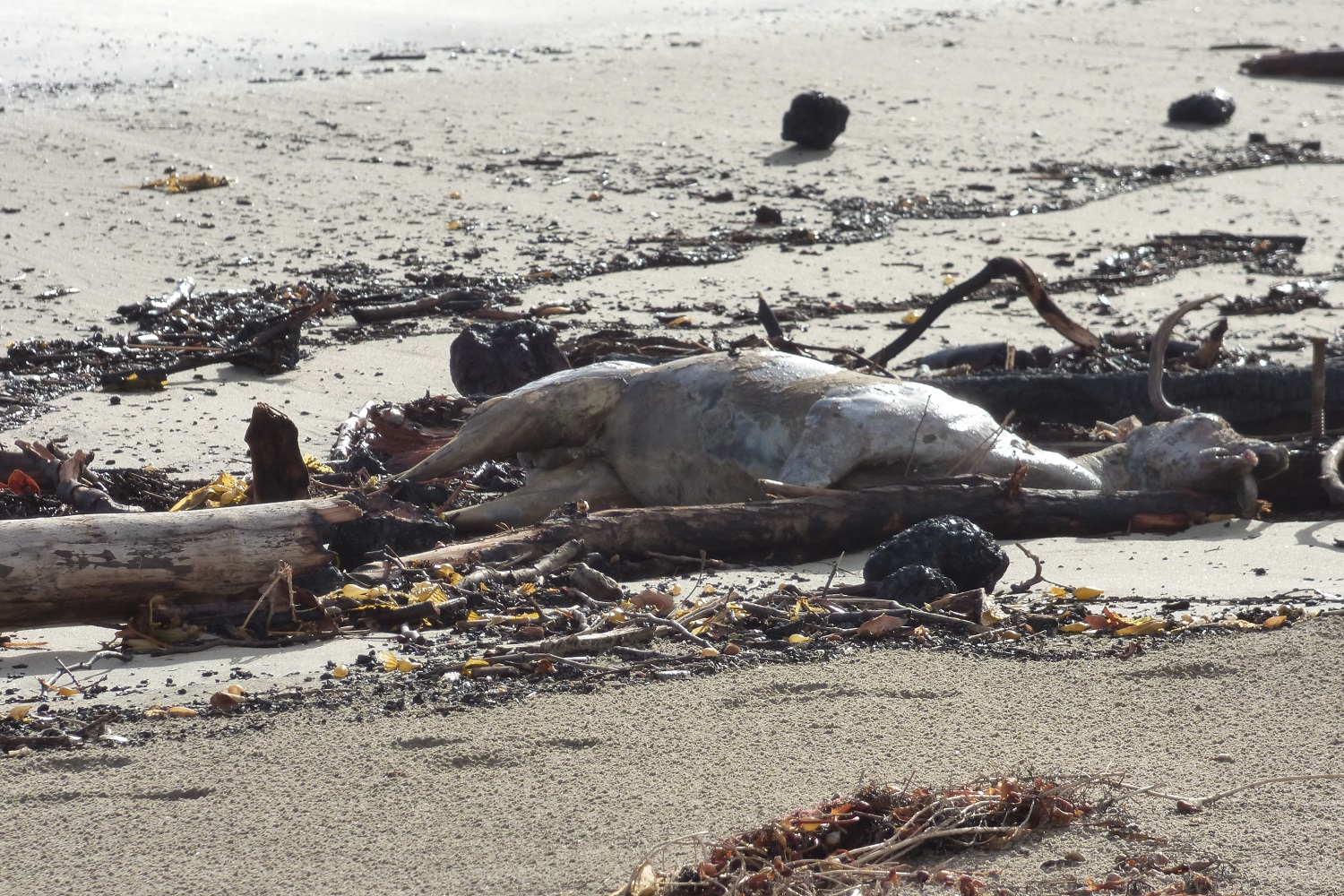 This dead deer washed down onto the beach after the first rains—a reminder of the high cost of wildfire on the wildlife in the Santa Monica Mountains.