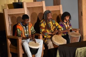 Gerald Rivers, a long-time Theatricum performer, presented a history of the meaning of Kwaanza, a name derived from the Swahili phrase, matunda ya kwanza, meaning first fruits, or harvest. The week-long celebration lights a candle for each of seven principles: Umoja: Unity; Kujichagulia: Self-Determination; Ujima: Collective Work and Responsibility; Ujamaa: Cooperative Economics; Nia: Purpose; Kuumba: Creativity; Imani: Faith. Rivers wrapped things up by asking everyone to declare “Harambe!” meaning “all pull together,” which everyone did with great gusto.