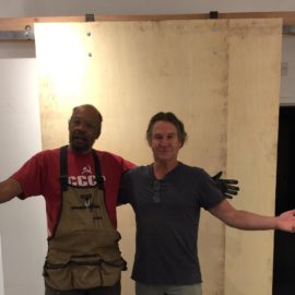 Artists in every sense of the word, Patrick Ramsey and Kit Plumridge celebrate the wall installation, part of the TCG remodel.