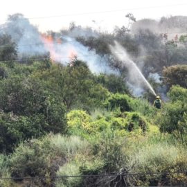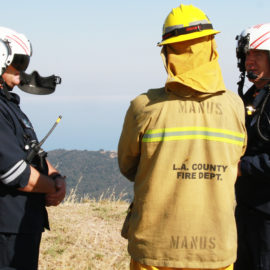 Richard Licon, Fire Inspector for LACoFD, was at the fire site for the first hour. “I didn’t think we’d be out there that long.” A week later, well after the fire was controlled, he said, “We still have a fire crew and patrol in the area to make sure nothing goes through it again.”