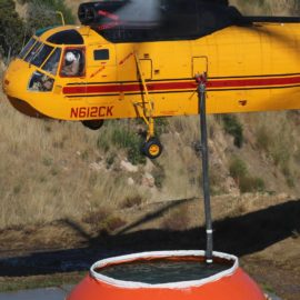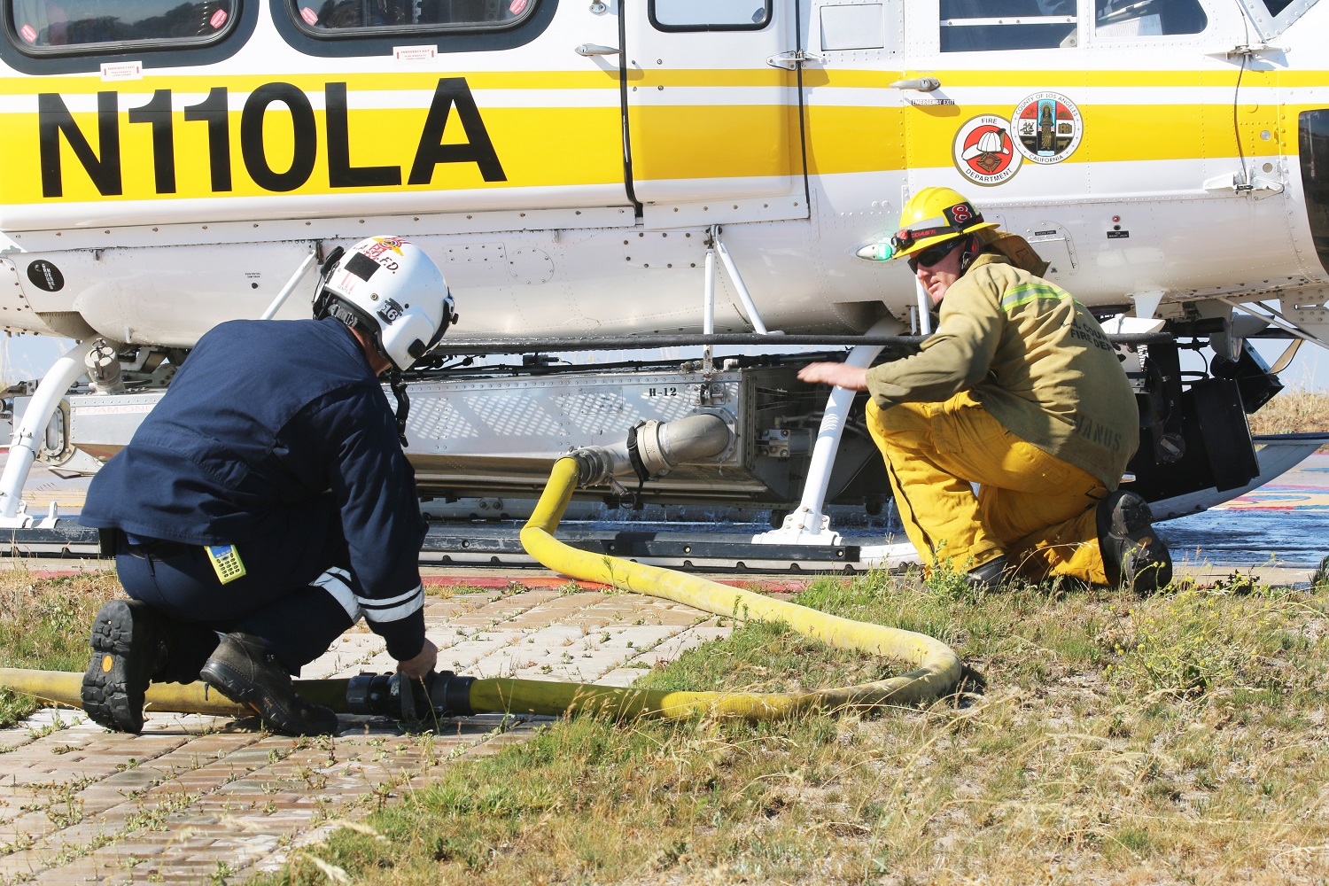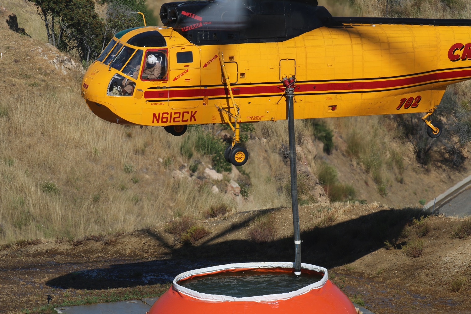 Soon after, LACoFD secured and added one of the biggest fire-fighting helicopters in the world, the Sikorsky Sky Crane to their resources. Standing about two stories tall and able to pick up more than 2,000 gallons of water at a time, the mighty Sky Crane went into rotation with the other four helicopters.
