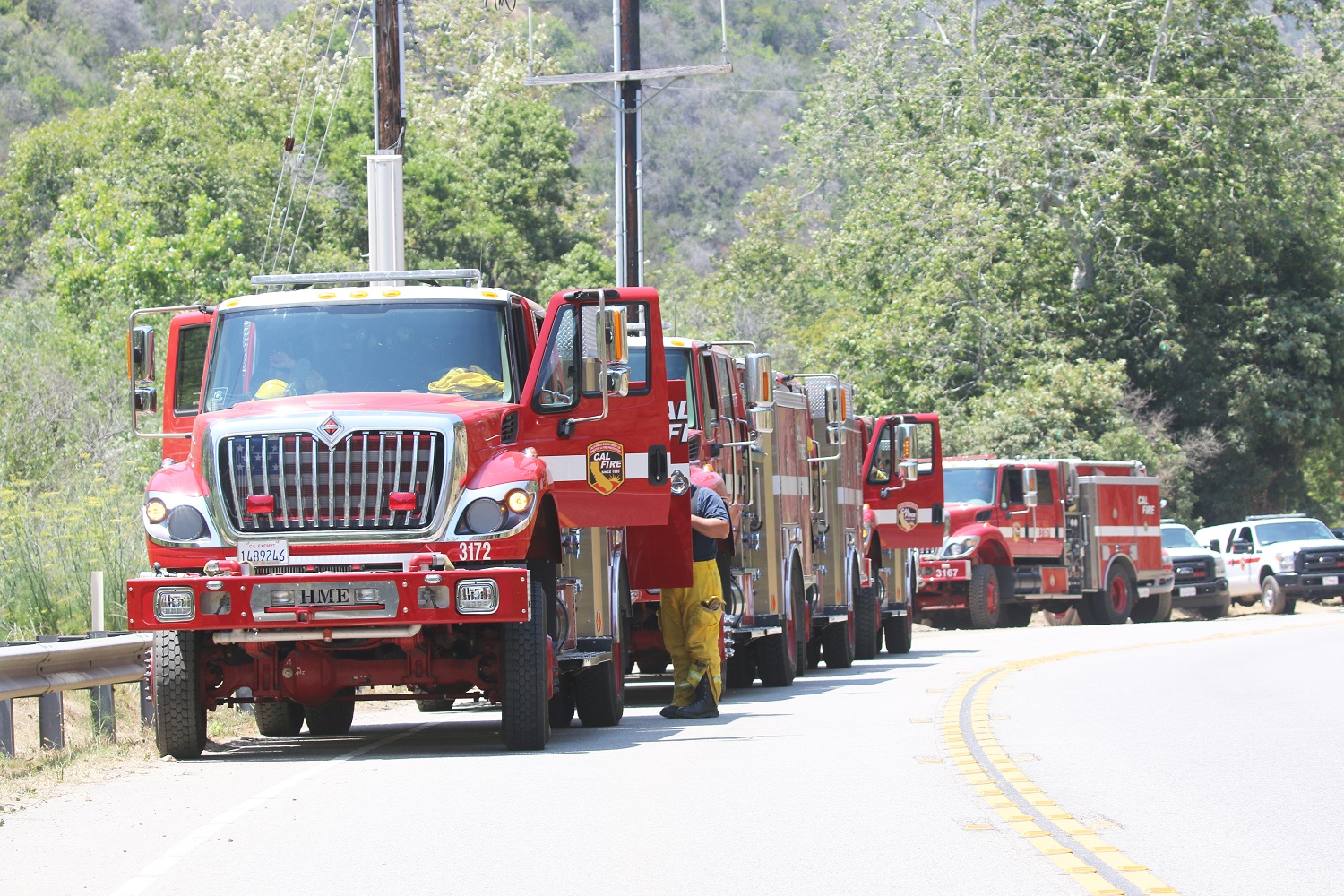 L.A. County Fire Engines lined up along Topanga Canyon Blvd. When fire crews couldn't get