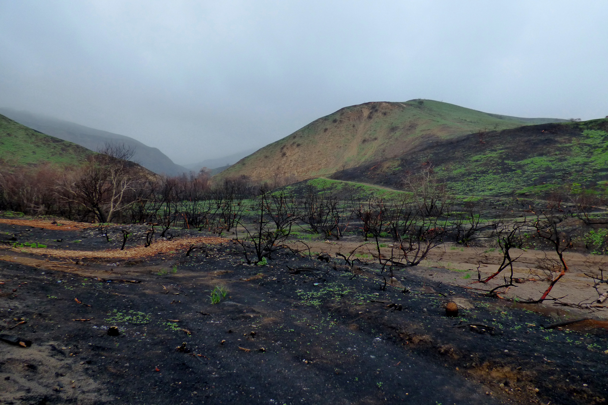 the destruction caused by the fire, is open again and already beginning to regrow.