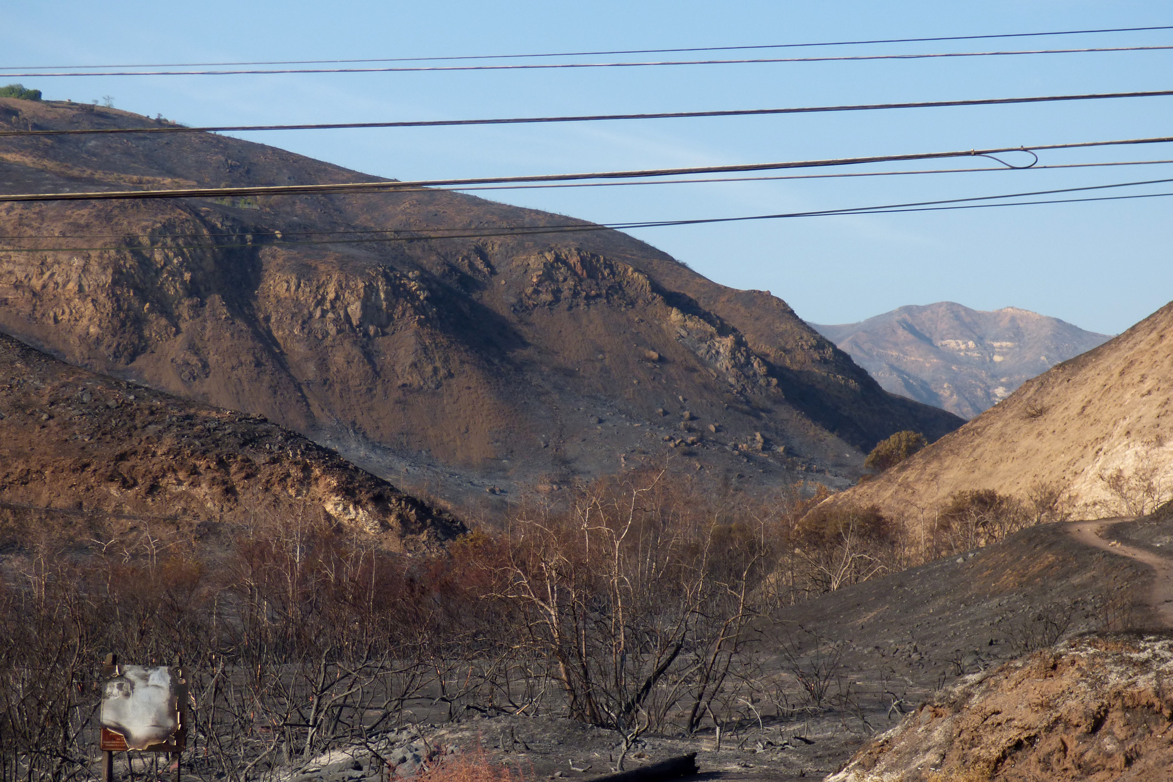 Corral Canyon, just days after the Woolsey Fire, looking as desolate as a war zone.