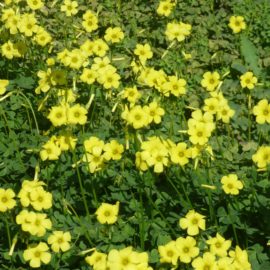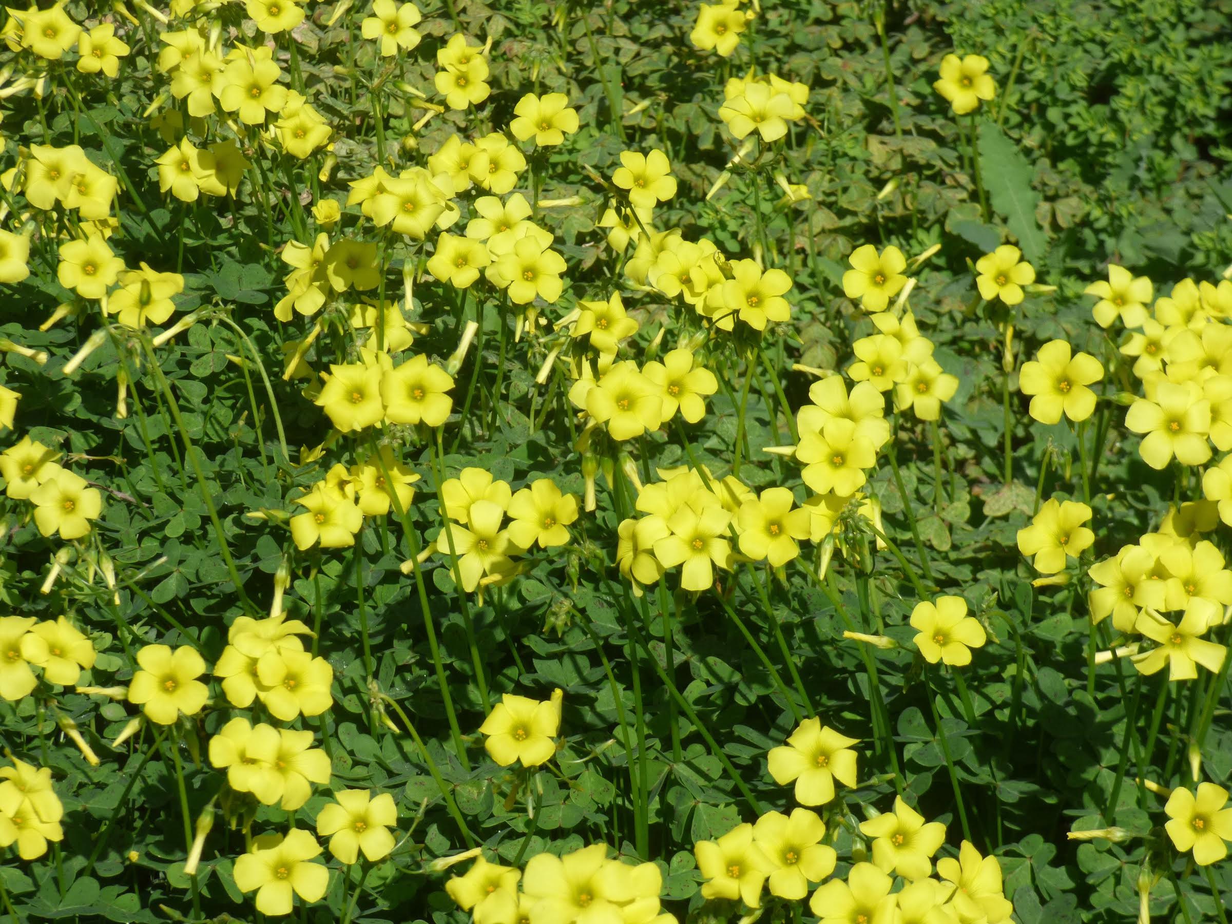 Surprise is an understatement. Oxalis has not only thrived, it’s conquered, spreading like green fire throughout the mountains. Getting rid of this colorful pest is almost impossible, but the shamrock-like green leaves and yellow flowers are edible, although they should only be eaten in moderation. The plant contains high levels of oxalic acid, which gives the plant its characteristic sour taste and makes it a favorite with children who like to chew the flower stems, but it can cause stomach upset in high concentrations.