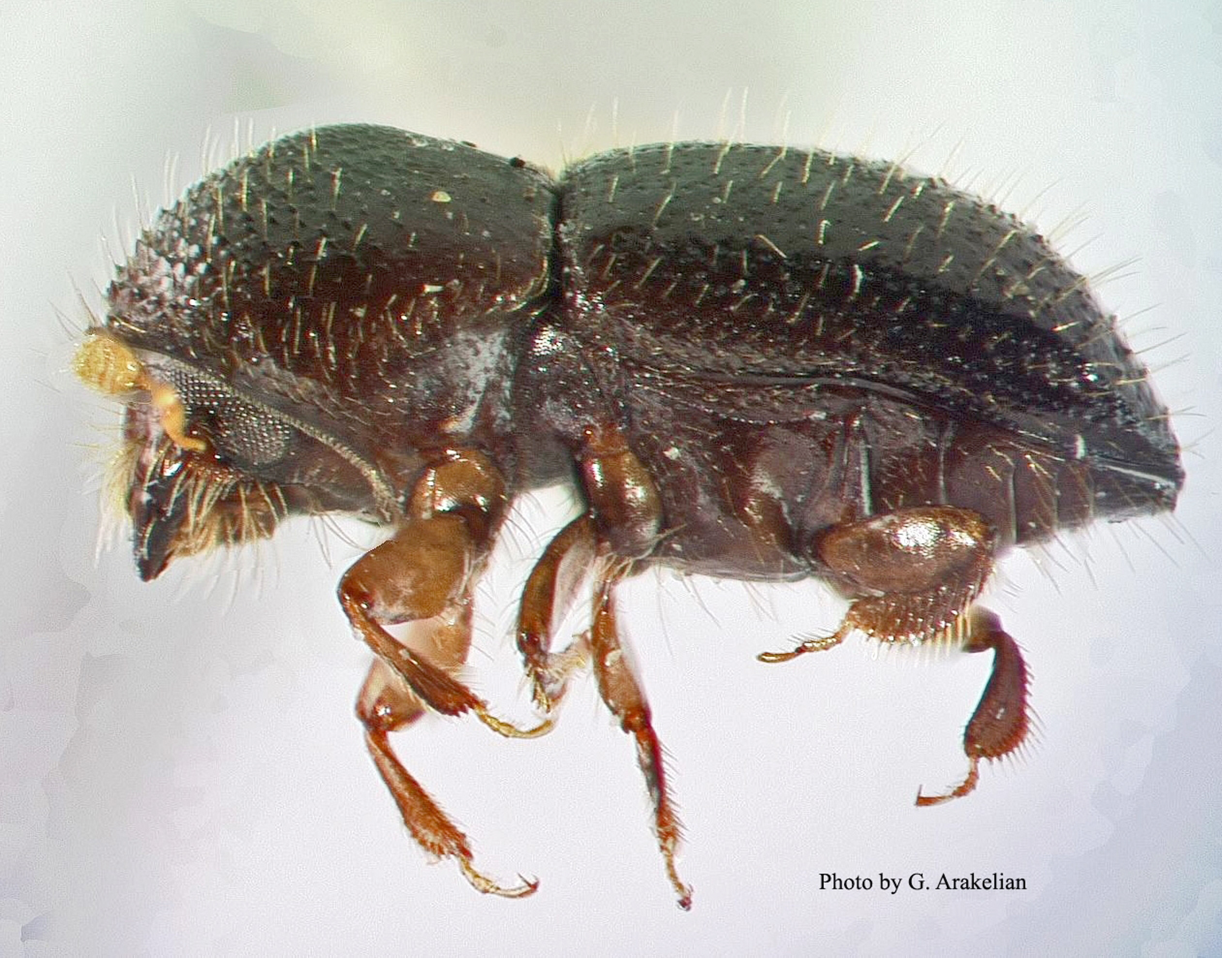 The polyphagous shot hole borer is smaller than a grain of rice and spends most of its life inside the tree. This insect is a major problem in L.A. County, killing native and non-native trees and spreading rapidly. Photo by A. Arakelian